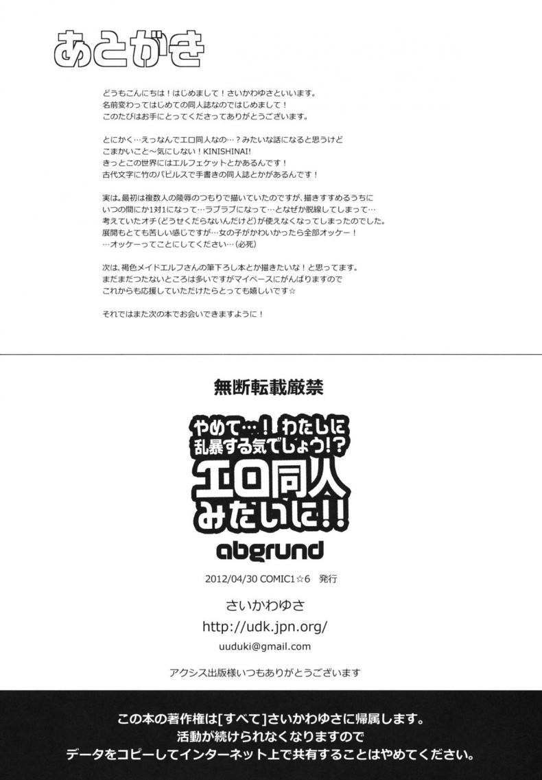 คุณจะข่มขืนฉันใช่ไหม (COMIC1☆6) [abgrund (Saikawa Yusa)] Yamete...! Watashi ni Ranbou Suru Ki deshou! Ero Doujin Mitai ni!! Stop...! You Intend to Rape Me, Right! Just Like in an Ero-Doujin!!
